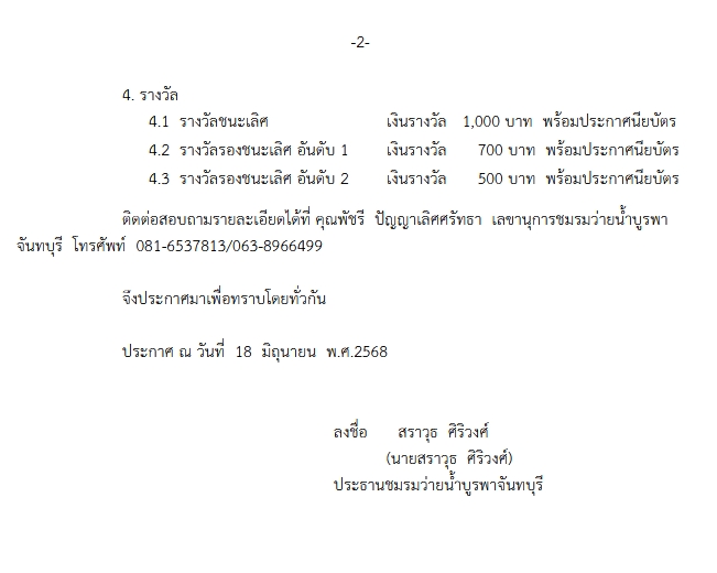 ผู้ประกาศ : นางสาวอารีย์ โคตะนันท์ โทร.4112