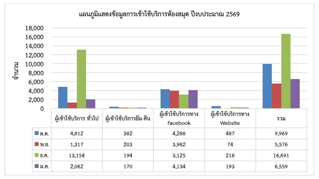 งานห้องสมุด กองบริหารวิทยาเขตจันทบุรี สำนักงานอธิการบดี ขอแจ้งข่าวสถิติการให้บริการ ประจำเดือน มกราคม พ.ศ.2569