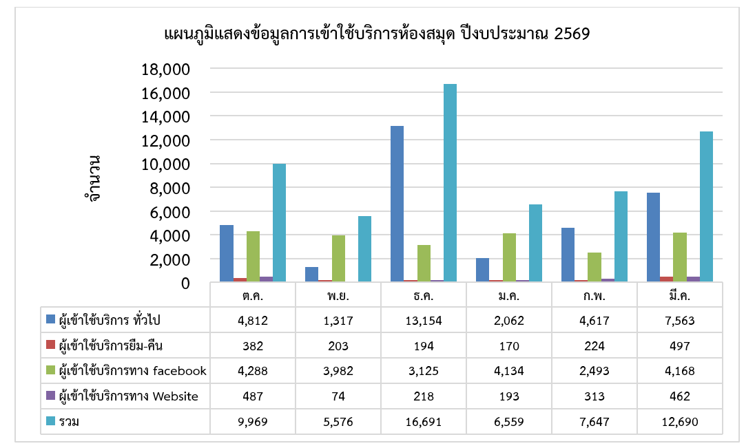 งานห้องสมุด กองบริหารวิทยาเขตจันทบุรี สำนักงานอธิการบดี ขอแจ้งข่าวสถิติการให้บริการ ประจำเดือน มีนาคม พ.ศ.2569