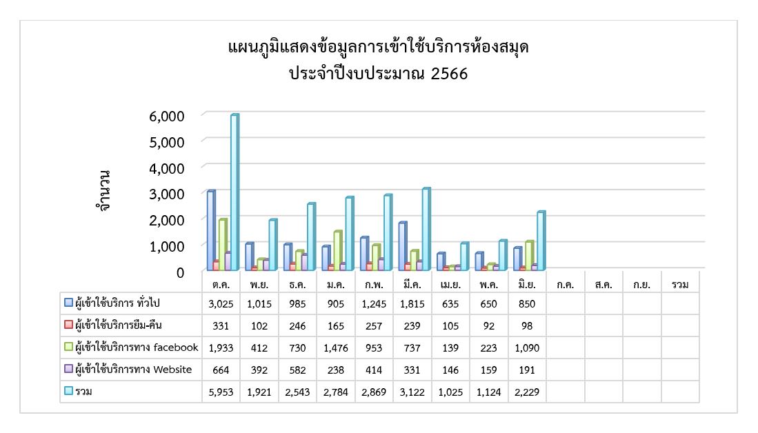 งานห้องสมุด กองบริหารวิทยาเขตจันทบุรี สำนักงานอธิการบดี ขอแจ้งข่าวสถิติการให้บริการ ประจำเดือนมิถุนายน พ.ศ.2566