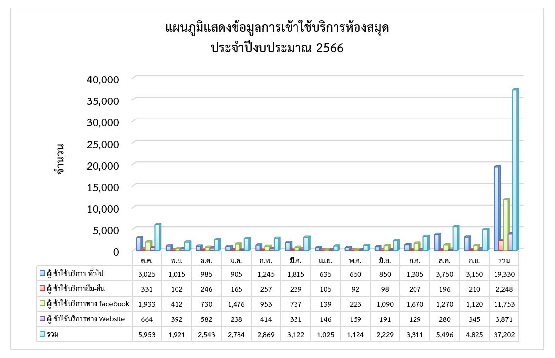 งานห้องสมุด กองบริหารวิทยาเขตจันทบุรี สำนักงานอธิการบดี ขอแจ้งข่าวสถิติการให้บริการ ประจำเดือนกันยายน พ.ศ.2566