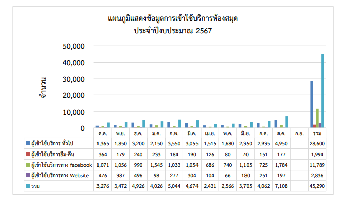 งานห้องสมุด กองบริหารวิทยาเขตจันทบุรี สำนักงานอธิการบดี ขอแจ้งข่าวสถิติการให้บริการ ประจำเดือน สิงหาคม พ.ศ.2567