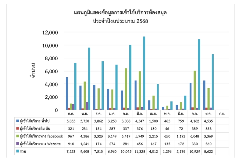 งานห้องสมุด กองบริหารวิทยาเขตจันทบุรี สำนักงานอธิการบดี ขอแจ้งข่าวสถิติการให้บริการ ประจำเดือน สิงหาคม พ.ศ.2568