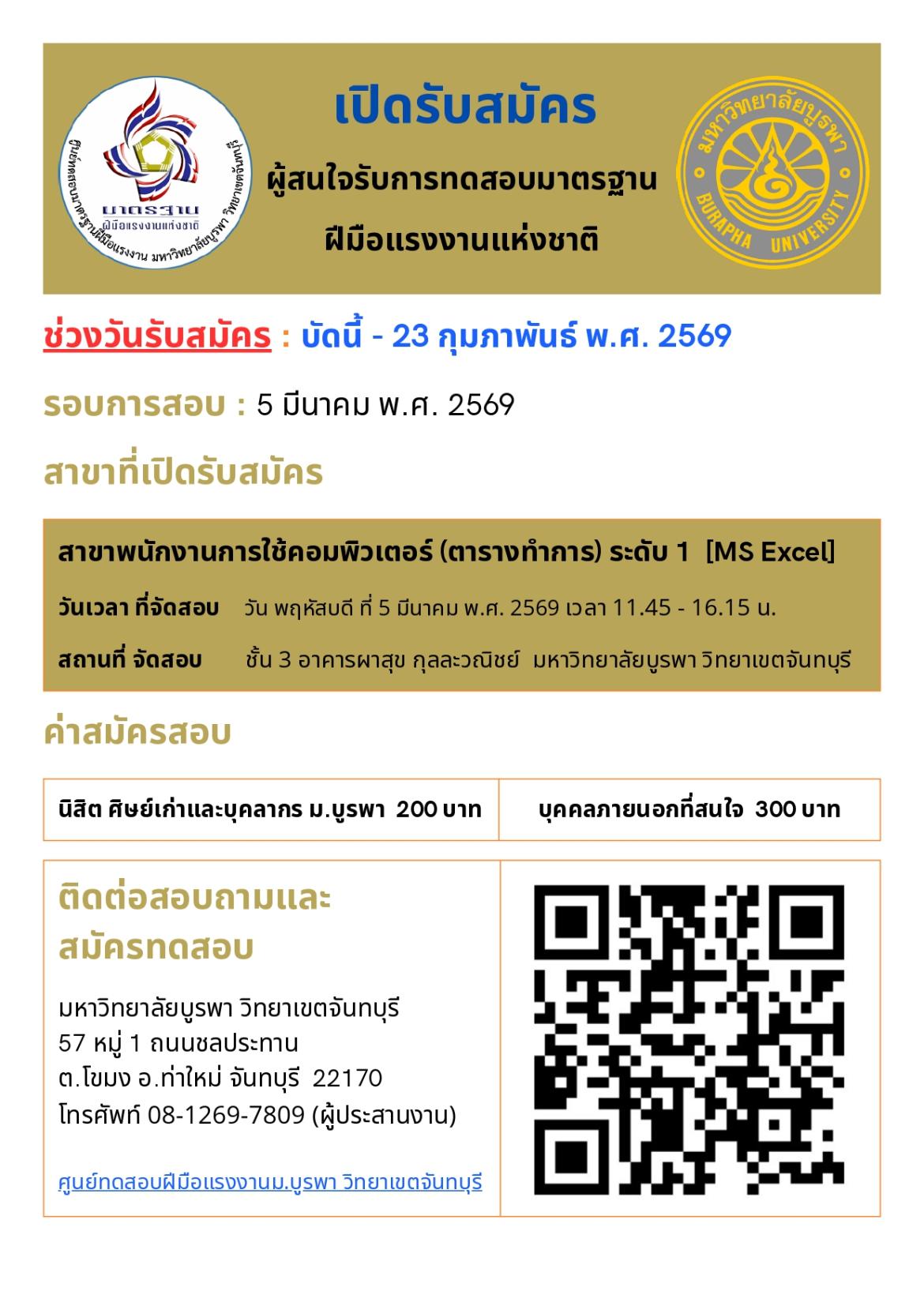 สำหรับ นิสิต ศิษย์เก่าและบุคลากร มหาวิทยาลัยบูรพา ค่าสมัครทดสอบ 200 บาท
