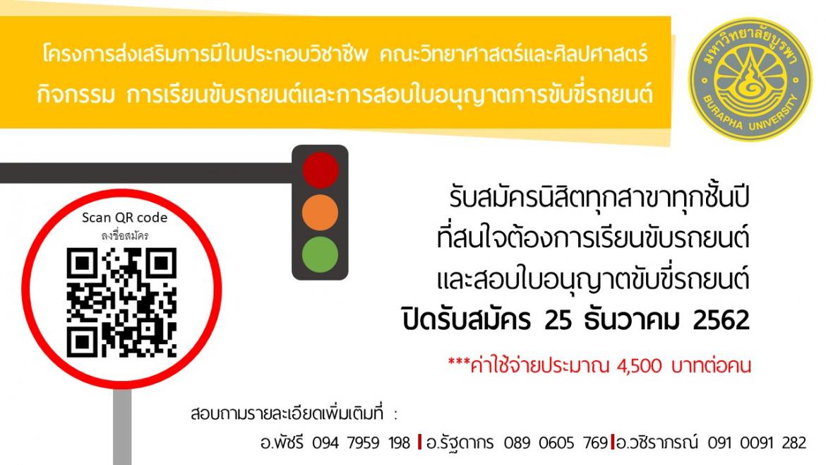 รับสมัครนิสิตทุกสาขาทุกชั้นปี ที่สนใจต้องการเรียนขับรถยนต์ และสอบใบอนุญาตขับขี่รถยนต์