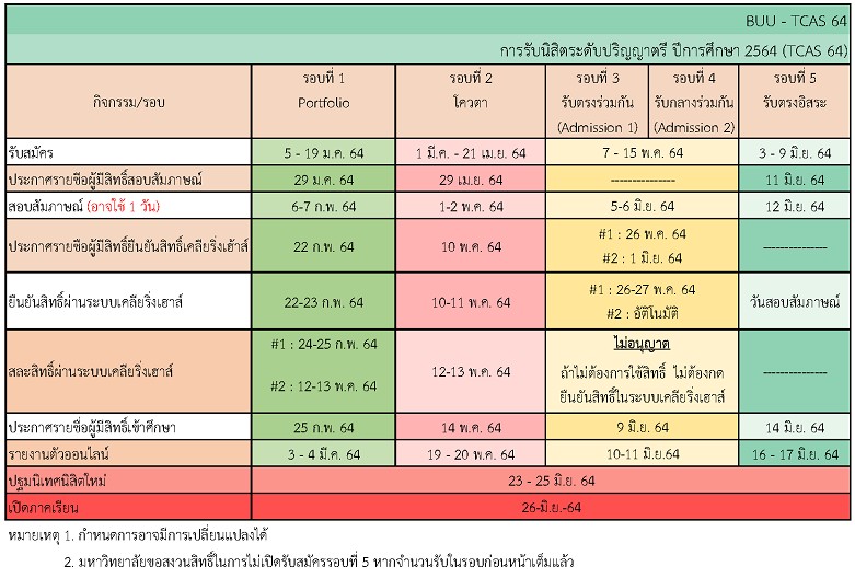 โครงการรับบุคคลเข้าศึกษาตามข้อตกลงความร่วมมือทางวิชาการ (MOU) มหาวิทยาลัยบูรพา วิทยาเขตจันทบุรี ประจำปีการศึกษา 2564