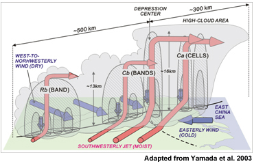 The ribbons of maximum low-level winds are conduits of low-level moisture that feeds organized convection and precipitation (Fig. 3F2.1).122,42,123 Variability in the LLJs can have a large impact on regional precipitation.123,124,125